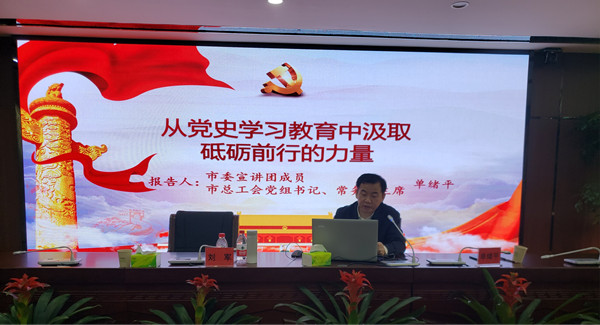 爲慶祝建黨100周年,紮實推進弘湘國投學黨史教育活動,營造“學黨史、悟思想、辦(bàn)實事、開新局”氛圍。4月23日上午,弘湘集團召開建黨100周年,學黨史明初心黨史學習教育宣講會,邀請市總工會黨組書記、常務副主席、市委宣講團成員單緒平作黨史學習專題講座。宣講會由集團公司黨委書記、董事長劉軍主持。集團黨委領導班子成員及全體黨員及入黨積極分子參(cān)加宣講會。
