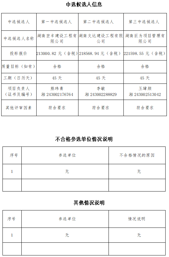 建湘項目房屋結構可靠性檢測(cè)服務單(dān)位比選内部比選中選候選人公示